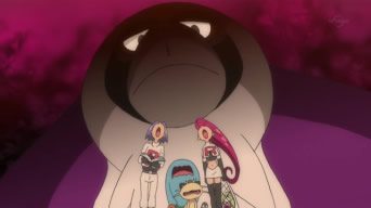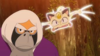 Bewear, che si pone fra il Team Rocket ed Oranguru. I due Pokémon lasciano tutti di stucco quando anziché lottare si scambiano del miele e del succo di palma!
