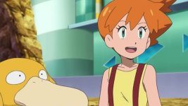 Le prime a mettersi in gioco sono Ibis e Suiren, che sfidano Misty. Le due Allenatrici di Alola ordinano ai propri Steenee e Popplio di attaccare Psyduck, il quale subisce Foglielama e Bollaraggio. Il mostriciattolo Papero viene intrappolato in un Pallone d’acqua e, cadendo da un’altezza notevole, sbatte la testa. Colpito da una forte emicrania, il Pokémon usa Confusione sui nemici e gli rende impossibile qualsiasi movimento. Tuttavia, per evitare che Steenee e Popplio si facciano male, Misty ordina a Psyduck di fermarsi. Solo una volta concluso l’incontro, il Pokémon d’Acqua si ricorda del mal di testa e comincia a piangere!