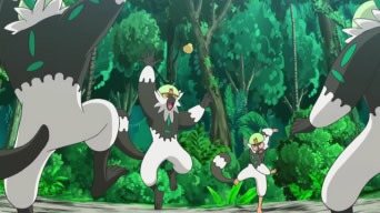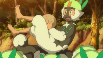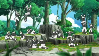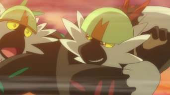 Di nuovo a scuola, Ash si diverte ad impersonare un Passimian; il suo obiettivo è imparare ad agire come i mostriciattoli di tipo Lotta ed aiutare Tiny a riottenere lo status di capobranco. A Lylia viene in mente di dare il suo contributo: insieme ad Ibis e Suiren, la giovane realizza costume e trucco da Passimian per il ragazzo di Biancavilla, che alla fine delle lezioni sembra un vero Pokémon scimmia! Ash fa ritorno dal branco e viene scrutato con curiosità dai suoi “simili”, finché il più piccolo non decide di avvicinarsi e giocare con lui a fare passaggi. Gradualmente, anche gli altri esemplari vengono coinvolti ed iniziano a giocare! Quando Ash lancia la Bacca troppo in alto, a recuperarla sono il piccolo Tiny ed una delle altre scimmie che gli fa da trampolino. Una volta rinnovato il suo spirito combattivo, l’ex capobranco di Mele Mele sfida i Passimian di Akala, ed i due Team decidono di affrontarsi in spiaggia. Le scimmie dalle macchie rosse lanciano la noce di cocco ed, al cadere della stessa sulla sabbia, entrambe le squadre vi si fiondano addosso. Il dominio della palla è in mano al Team di Akala, finché Ash – che è stato chiamato a lottare insieme a Tiny ed i suoi due amici – non riesce a bloccarla. Egli cede il frutto ai suoi compagni di squadra ed effettua alcuni passaggi con loro, ma da lì a breve la noce di cocco è di nuovo in mano alle scimmie avversarie. Ketchum da poi un consiglio utile a Tiny, ossia di sfruttare la tecnica del trampolino, e così facendo il Pokémon Lotta riottiene la palla. Le cose si mettono male: sia Ash sia gli altri due Passimian vengono placcati, tuttavia giunge un aiuto inaspettato! La scimmia più piccola del branco, seguita da tutti gli altri esemplari, si schiera contro il Team di Akala, costringendolo alla resa e riottenendo la preziosa noce di cocco! Per dimostrargli la sua gratitudine, i Passimian locali prendono in braccio Ash e lo trasportano dentro la foresta. Suiren ipotizza che il nostro eroe sia stato scelto come nuovo capobranco delle scimmie di Mele Mele.