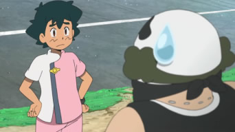Ash, Pikachu, Rotom e Poipole, diretti verso il Centro Pokémon, dove l’Allenatore di Biancavilla parteciperà ad uno stage lavorativo con i suoi amici, vengono fermati da alcuni membri del Team Skull interessati al Pokémon Velenago. I tre malviventi schierano contro al nostro eroe un Salandit, uno Zubat ed un Garbodor, ma sono costretti a battere in ritirata quando il Pokémon Discarica viene colto da un improvviso stato di malessere. Ash raggiunge finalmente il Centro Pokémon e, dato che l’Infermiera Joy si è presa una brutta influenza, i nostri eroi decidono di sostituirla, consentendole di riposare. Mentre Kawe e Chrys vanno in cerca di alcune divise da Infermiere, le ragazze indossano le divise da Infermiera già a disposizione. Ash, non trovando altro da mettersi addosso, fa come le sue amiche, che – vedendolo in quello stato – non possono fare a meno di truccarlo e costringerlo ad indossare una parrucca bionda. Rotom, naturalmente, si occupa di scattare foto-ricordo.