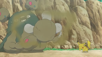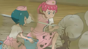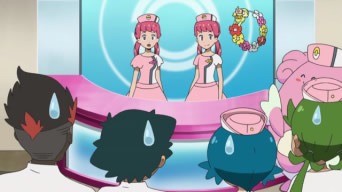 Una volta tornati Kawe e Chrys con le divise da Infermiere, Ash può indossare qualcosa che lo mette a suo agio. I nostri eroi trascorrono la mattinata a ritirare Pokémon, a preparare le stanze per gli ospiti, a consegnare delle medicine in giro ed a lavare mostriciattoli quali Tauros ed Exeggutor. In seguito Ash trova fuori dal Centro il membro del Team Skull in possesso del Garbodor malato e capisce che il ladruncolo vorrebbe il loro aiuto, ma non ha il coraggio di chiederglielo. Egli lo costringe a far uscire Garbodor dalla Poké Ball e subito un tanfo insopportabile invade la stanza; Blissey, esaminando un arto del mostriciattolo, si rende conto che in esso si è formato un deposito di veleno. A salvare la situazione è l’Infermiera Joy, che ordina subito di portarle dei cotton fioc giganti e, mediante essi, elimina ogni residuo di veleno dal braccio di Garbodor, che qualche ora dopo risulta completamente in salute! Il membro del Team Skull non ringrazia i nostri eroi, ma prima di andarsene compra un cotton fioc gigante dicendo che lo ritiene solo un souvenir. Dal retro dal Centro, un’altra Infermiera Joy entra nella stanza. A quanto pare colei che ha aiutato Ash e gli altri non era l’Infermiera Joy di Hau’oli, bensì una delle sue sorelle giunta da Akala per aiutarla! Rotom, volendo rendere l’Infermiera locale partecipe della giornata, le mostra le foto che ha scattato, tra cui quelle di Ash nelle vesti di Infermiera!