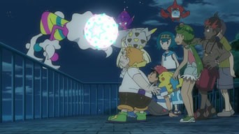 Ash ed i suoi amici, recatisi in spiaggia per assistere a dei fuochi d’artificio, incontrano una misteriosa creatura variopinta in grado di trasformare il proprio capo in una brillante esplosione di colori ed, in seguito, farlo tornare al suo stato originale. Ad un certo punto, una delle suddette esplosioni fa sì che venga ad aprirsi un Ultravarco e ne esca un altro mostriciattolo non identificato.