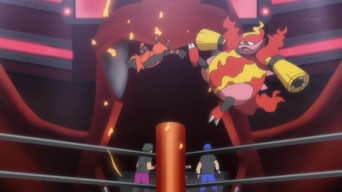Allo Stadio Royale, Mister Royale ed il suo Incineroar si battono contro un Allenatore ed il suo Electivire. Ad un certo punto la zampa di Incineroar viene afferrata dall’Allenatore sfidante, il quale è uno dei Revengers – partecipanti scorretti che ignorano ed infrangono le regole dello Stadio Royale –, ma Incineroar riesce a liberarsi dalla presa ed a scacciare Electivire prima che gli infligga danni. Il felino sta per battere l’avversario, quando il Magmortar di un certo Allenatore lo colpisce da dietro. Electivire viene dichiarato sconfitto per violazione del regolamento (in quanto un altro mostriciattolo è giunto in suo soccorso). L’Allenatore di Magmortar sfida Mister Royale ad una Lotta in Singolo contro di lui per determinare chi sia il più forte dello Stadio, e Mister Royale accetta, dicendo che potranno confrontarsi il giorno dopo! Una volta tornato a casa, il Professor Kukui viene a sapere che Ash e Magnolia hanno intenzione di andare allo Stadio per assistere allo scontro fra Mister Royale e l’Allenatore di Magmortar. I due gli propongono di andarci tutti insieme ed il Professore, non riuscendo a trovare una scusa valida, accetta, domandosi tra sé e sé come farà a gestire la situazione in cui si è appena cacciato.