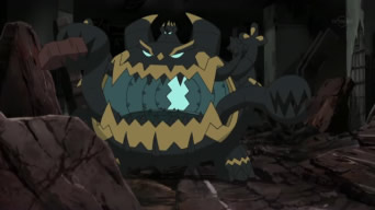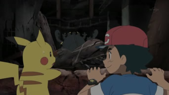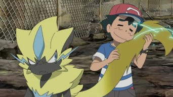 Quando il ragazzo di Biancavilla e Pikachu riaprono gli occhi, si trovano in una landa desolata. I due raggiungono un edificio in rovina da cui provengono strani rumori e vedono un’enorme creatura nera che sta divorando tutto. Ash ed il Pokémon Topo vengono inseguiti dalla misteriosa creatura, che li attacca violentemente. Ketchum ordina a Pikachu di usare la sua Mossa Z, tuttavia il Cerchio Z non funziona. I due verrebbero colpiti se non fosse per un Pokémon sconosciuto che, eseguendo gli ordini del proprio Allenatore, sferra Zuffa contro il nemico. Il mostriciattolo in questione, chiamato Zeraora, ricorre a Pugni Plasma, grazie a cui paralizza l’avversario dando il tempo ai presenti di fuggire. Usciti dall’edificio, il ragazzo di Biancavilla e Pikachu scoprono che il mostro in cui si sono imbattuti e l’Allenatore che li ha salvati si chiamano rispettivamente Guzzlord e Dia. Quest’ultimo rivela che Guzzlord non è un Pokémon, bensì un’Ultracreatura apparsa senza preavviso che ha distrutto l’intera Isola su cui si trovano, ed aggiunge che il proprio obiettivo è quello di sconfiggerlo. Ash si propone di aiutarlo, ma Dia sostiene che un bambino gli sarebbe solo d’intralcio. Per convincerlo del contrario, Ash lo sfida ad una Lotta. Il Pokémon Topo e Zeraora inaugurano l’incontro con due Attacco Rapidi, seguiti da Zuffa e Codacciaio. Pikachu viene sopraffatto da Zuffa e tenta di rimediare con Elettrotela, ma l’avversario si libera e lo sconfigge definitivamente con Pugni Plasma. Ketchum accetta di farsi condurre da Dia alla sua base, dove lui e Pikachu staranno fino a che gli Ultra Ranger (una squadra di Allenatori specializzati nella Lotta contro le Ultracreature) non troveranno un modo per rispedirli a casa. Giunti alla loro destinazione, i nostri eroi si rendono conto che la base di Dia è la Scuola di Pokémon, che risulta in rovina.