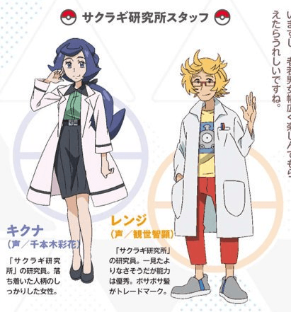 Qualche giorno fa sono stati rivelati i due personaggi che aiuteranno il Professor Sakuragi nella nuova serie animata Pocket Monsters: Kikuna e Renji.