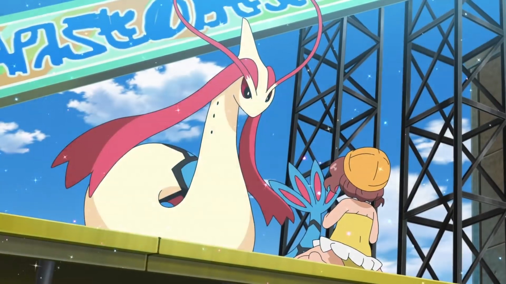 L’episodio prosegue con l’allenamento di Nami e Feebas che, grazie all’aiuto degli amici, riescono a migliorarsi un po’ in vista del Festival. Nami impara a nuotare e Feebas a muoversi con più grazia. Durante l’allenamento i ragazzi notano una particolare scaglia luccicante sul dorso di Feebas, che si tratti di una Squama Bella?