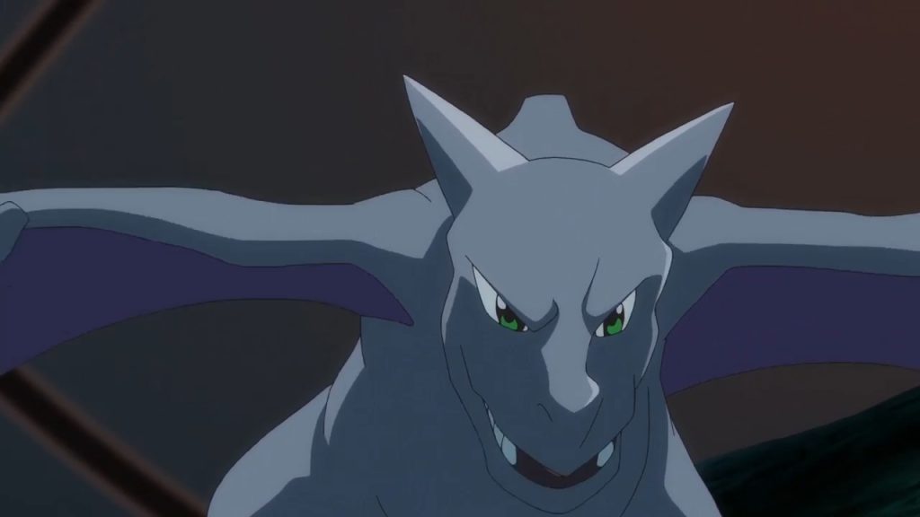 L’episodio si conclude con Ash che si libera del Team Rocket; mentre Goh riesce a domare, con l’aiuto di Golurk, il “neonato” Aerodactyl e successivamente a catturarlo. Un nuovo potentissimo Pokémon si unisce alla squadra di Goh: un finale perfetto per questo episodio che dopo molto tempo torna a dare un po’ di visibilità ai Pokémon fossili.
