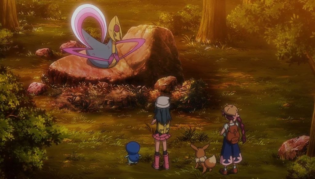 Questo 75° episodio inizia da dove si era concluso quello precedente: l’incontro voluto dal destino tra Chloe, Lucinda e Cresselia. Le due Allenatrici riescono ad avvicinarsi e a medicare il Pokémon ferito. Le due si interrogano su cosa sia successo a Cresselia e Lucinda ipotizza che siano le conseguenze di una lotta con Darkrai.