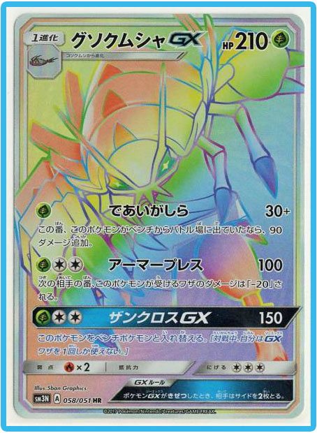 L’attacco GX della carta, che non necessita di carte Energia per poter essere utilizzato, è Tri Hazard GX (Triplo Azzardo GX) che ti permette di scambiare il Pokémon Attivo avversario con un Pokémon in panchina a tua scelta. Il nuovo Pokémon Attivo avversario è avvelenato, bruciato e paralizzato.