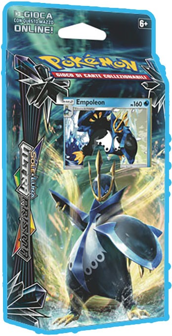 La carta Pokémon Stadio 2 di Empoleon, di tipo acqua e con 160 PS, presenta due mosse: Total Command (Controllo Totale) provoca 20 punti di danno per ogni Pokémon presente nella Panchina dell’avversario, mentre Whirlpool (Mulinello) colpisce con 90 punti danno e permette al giocatore di scartare una Carta Energia assegnata al Pokémon nemico Attivo.