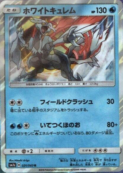 Kyurem Bianco è un Pokémon Base di tipo Acqua con 130 Punti Salute, una Debolezza al tipo Acciaio, nessuna Resistenza e un Costo di Ritirata pari a 3. Il suo primo attacco Field Crush richiede due carte Energia Incolore infligge 30 danni e permette di scartare l’eventuale carta Stadio avversaria in gioco. Il secondo attacco Freezing Flame richiede due carte Energia Acqua e una Incolore, infligge 80 danni di base con la possibilità di incrementare di altri 80 se sono assegnate carte Energia Fuoco a questo Pokémon.