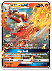 Oltre all’immagine della confezione, sono state svelate anche le versioni italiane delle carte di Rayquaza-GX e Blaziken-GX! Il Pokémon Stratosfera dispone del potentissimo attacco Tempesta GX, che ti permette di pescare ben 10 carte dopo aver scartato tutte le carte presenti nella tua mano. Il focoso Pokémon Vampe invece può sferrare il devastante attacco Rogo GX, che scarta 2 carte Energia dai Pokémon del tuo avversario.