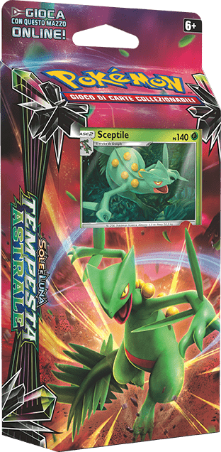 Il nuovo Set Allenatore Fuoriclasse dell’espansione Tempesta Astrale conterrà al suo interno otto buste, 65 bustine protettive raffiguranti Rayquaza, 45 carte Energia Base, sei dadi segnalini danno, due segnalini delle condizioni speciali, un segnalino GX in plexiglas, una guida all’espansione e un codice per sbloccare il tutto nel GCC online.