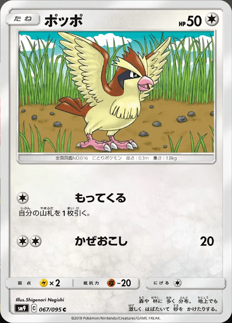 La nona espansione di Sole e Luna debutterà a breve in Giappone e prosegue senza sosta la rivelazione di nuove carte appartenenti al set! Dopo la presentazione della magnifica versione di Venusaur e Celebri-GX ALLEATI e delle carte di Ninetales, Ponyta e Rapidash, sono state mostrate tre nuove carte dedicate allo storico trio dei Pokémon Uccello: Pidgey, Pidgeotto e Pidgeot!