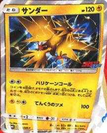 Il Pokémon leggendario di Kanto è di tipo Lampo, ha 120 PS e due attacchi: il primo è Hurricane Call (Richiamo del Tifone) che ha il seguente effetto: Lancia per 4 volte una moneta. Ogni volta che esce testa, cerca nel tuo mazzo una carta Energia Lampo e assegnala a uno dei tuoi Pokémon-EX o Pokémon-GX. Quindi, rimischia il mazzo. Il secondo attacco della carta è Sky High Claws (Artigli Supremi) che infligge 100 danni.