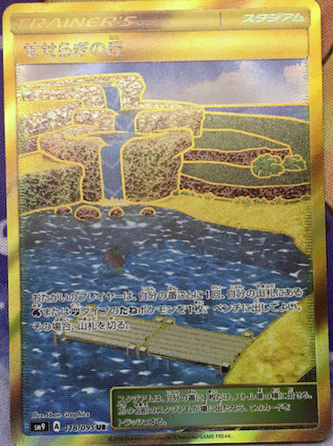 Le carte Allenatore Pokemon Communication, Judge’s Whistle avranno una versione rara segreta dedicata mentre a sorpresa il Gioco di Carte Collezionabili ci regala la prima carta stadio dell’era Sole e Luna in versione rara segreta e l’onore è toccato a Collina Scrosciante.