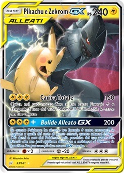 Possiamo notare che le carte Pokémon GX ALLEATI saranno presenti in ben 4 versioni: una versione base, una versione special art, una a illustrazione estesa e una rara arcobaleno. Sarà così per Venusaur e Celebi-GX ALLEATI, Magikarp e Wailord-GX ALLEATI, Pikachu e Zekrom-GX ALLEATI, Gengar e Mimikyu-GX ALLEATI e Latios e Latias-GX ALLEATI. Nel caso di Eevee e Snorlax-GX ALLEATI,invece, la versione special art sarà disponibile solo come carta promozionale.