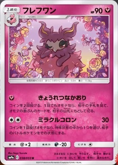 Aromatisse è un Pokémon Fase 1 di tipo Folletto con 90 Punti Salute, una debolezza al tipo Metallo, una resistenza al tipo Oscurità e un costo di ritirata pari a 1. Il suo primo attacco Intense Scent permette di lanciare due monete, se entrambi i lanci avranno come risultato testa sarà possibile scegliere due carte dalla mano avversario, che dovrà essere mostrata, e rimetterle nel suo mazzo. Il suo secondo attacco Miracle Cologne infligge 30 danni e al lancio di una moneta permette di scegliere una Condizione Speciale qualsiasi e infliggerla al Pokémon Difensore.
