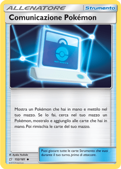 Giocando al GCC Pokémon capita spesso che il Pokémon che uno ha in mano in un determinato momento non sia quello che gli serve. Se solo si potesse scambiarlo con uno degli altri Pokémon del mazzo… Ebbene sì, amici, avete indovinato: Comunicazione Pokémon è ritornata! Quasi 10 anni fa, quando la carta ha fatto il suo ingresso nel GCC, è stata molto utilizzata anche ai livelli più alti del circuito competitivo. Questa preziosa carta Strumento consente di sostituire un Pokémon che hai in mano con uno qualsiasi del tuo mazzo. Il compagno ideale per la lotta sarà sempre a portata di mano!