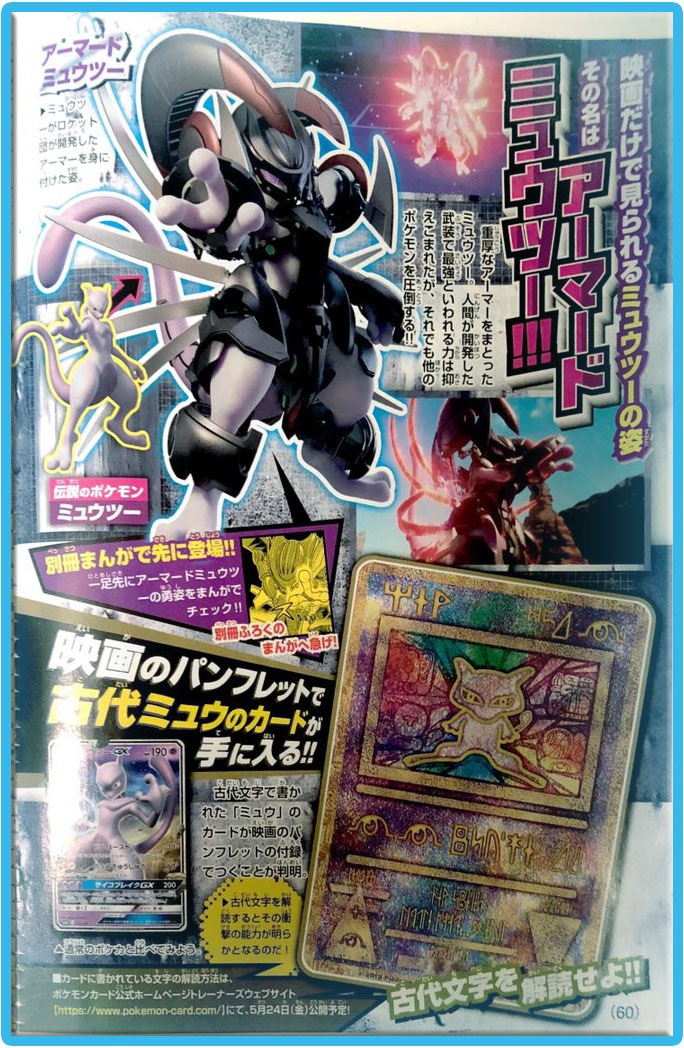 La prima versione di questa misteriosa carta risale all’anno 2000 in occasione dell’uscita nelle sale cinematografiche del film Pokémon 2000 o più comunemente noto come Pokémon 2 – La Forza di Uno. Mew Antico fu disponibile solo durante la prima settimana di proiezione del lungometraggio, in seguito le uniche carte promozionali ottenibili furono le carte di Articuno, Zapdos e Moltres.