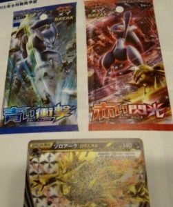 Oltre a mostrare le buste di espansione raffiguranti Zoroark e MegaMewtwo X per XY: BREAK Blue Impact e Chesnaught e MegaMewtwo Y per XY: BREAK Red Flash, possiamo notare una carta raffigurante Zoroark BREAK. Possiamo notare che l’artwork della carta è rappresentato da uno Zoroark dorato, e precedentemente, tutti i Pokémon BREAK si sono rivelati essere dorati, quindi questa è una peculiarità di tali carte. Possiamo inoltre notare come sia presente la scritta “Evolve da Zoroark”, questo fa supporre che questa Evoluzione BREAK sia in qualche modo una specie di “Carta LV.X” comparse nelle espansioni della serie Diamante e Perla.