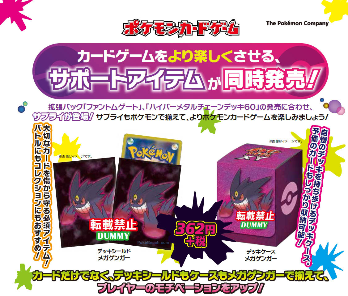 La nuova espansione si chiamerà Phantom Gate ed avrà come protagonista il dispettoso Gengar. All’interno dell’espansione saranno presenti almeno 88 carte, tra le quali Gengar-EX e M Gengar-EX. In contemporanea a Phantom Gate verranno lanciati sul mercato giapponese l’Hyper Metal Chain Deck, un mazzo di 60 carte basato su Dialga-EX ed Aegislash-EX, delle bustine protettive ed un porta mazzo raffiguranti MegaGengar.
