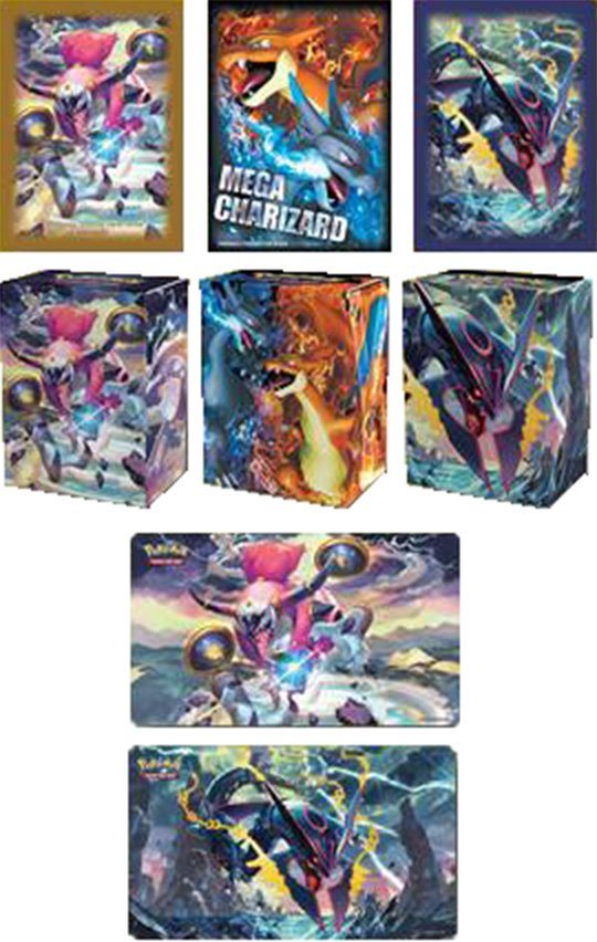 In America, invece, a dicembre verranno rilasciati portamazzi e bustine protettive raffiguranti Hoopa Libero, MegaCharizard X e Y e MegaRayquaza cromatico; e arene di gioco di Hoopa Libero e MegaRayquaza cromatico. Il tutto era stato precedentemente rilasciato in giappone, ed è la prima volta che un prodotto esclusivo nipponico viene rilasciato anche in suolo americano. Le bustine protettive saranno in pacchi da 65 e costeranno 7.99$ (circa 7,50€); i portamazzi costeranno 5.99$ (circa 5,50€) mentre le arene costeranno 21.99$ (circa 21,50€).