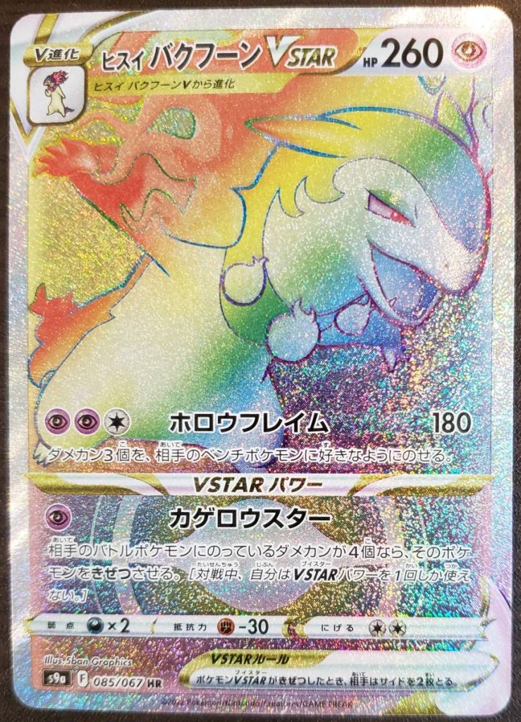 Per quanto riguarda le Full Art, 9 in totale, esse si dividono in carte Pokémon e Allenatore, tra cui possiamo vedere ancora una volta nuove scoperte in mezzo a vecchi ritorni. Virizion V e Starmie V si fanno largo con forza tra gli Iniziali di Hisui, Typhlosion, Decidueye e Samurott, che presentano una loro variante sia Full Art che Rainbow Rare. Infine, non poteva ovviamente mancare Garchomp V, compagno inseparabile di Camilla, a cui è stata dedicata anche una carta insieme alla Campionessa. Tra gli Allenatori FA invece abbiamo Selina, Petra e Soruan.