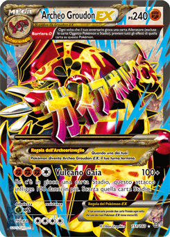 Insomma, Seismitoad-EX era il mazzo da battere; per questo molti giocatori si sono fiondati subito a giocare ArcheoGroudon-EX, che, con il suo Tratto Antico Barriera Omega, impediva la tattica distruttiva e logora dell’avversario, rendendo inutili anche le carte Allenatore come Xante o Raggio Ipnotossico, usate per cercare di bloccare il Pokémon dell’avversario. Nonostante quindi l’attacco di Groudon richieda 4 energie, una volta caricato (in genere in 4 turni), era inarrestabile! Soprattutto per i suoi 240PV, che il povero Seismitoad non riusciva a contrastare facendo massimo 30 danni (50 con la carta Muscolbanda). Combinato poi con la carta Allenatore Forzamuleto… diventa davvero difficile da buttare giù, per un qualunque mazzo!