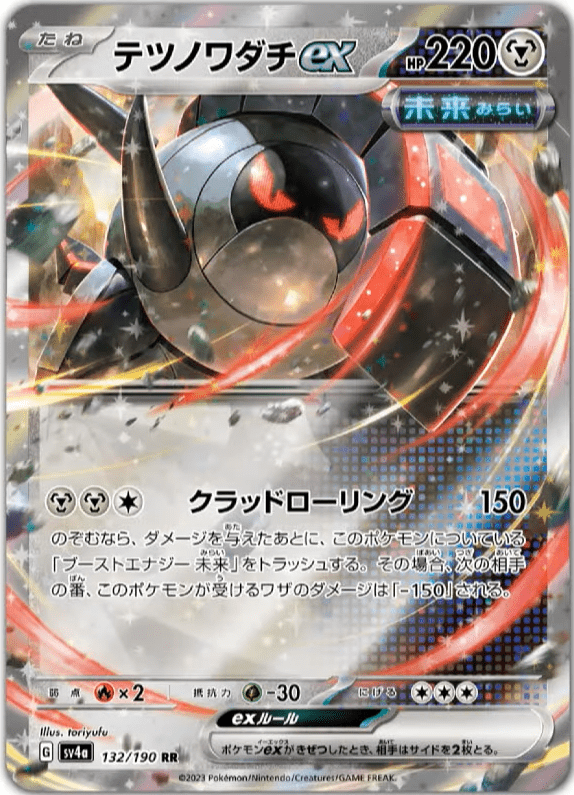 Le illustrazioni di Shiny Treasure EX non sono le prime a ritrarre i due Pokémon Paradosso, introdotti infatti per la prima volta nel GCC con la prima espansione del gioco di carte dedicata alla nona generazione Pokémon. Seguono altre nuove carte del set.