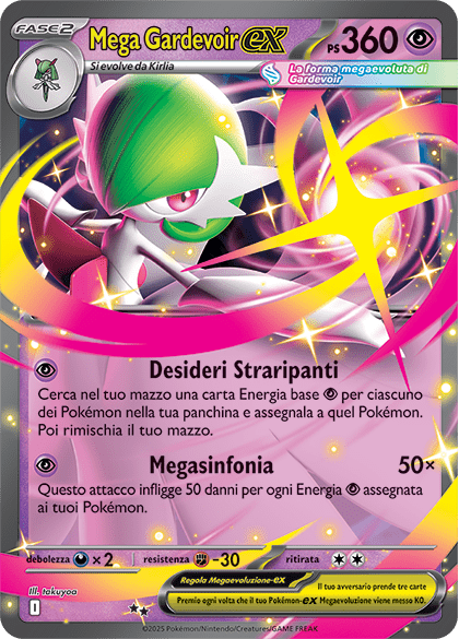 Nelle scorse settimane, abbiamo già parlato di questi due nuovi set, anticipandone il ruolo apripista della nuova era del GCC Pokémon, che seguirà quella introdotta con Scarlatto e Violetto. Abbiamo inoltre mostrato le prime carte di Mega Brave e Mega Symphonia, rispettivamente MegaLucario-ex e MegaGardevoir-ex. L’annuncio del ritorno delle megaevoluzioni segna infatti la fine del ciclo di Scarlatto e Violetto, con l’abbandono delle meccaniche di gioco introdotte, tra cui Pokémon degli Allenatori e i Pokémon Teracristal.