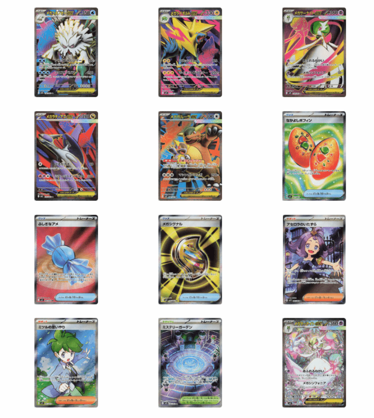 Sono state rivelate tutte le carte rare segrete dei set Mega Brave e Mega Symphonia, ultime collezioni pubblicate in Giappone.
