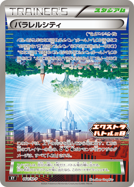 Durante il primo giorno dell’anno, 1 gennaio 2026, in Giappone sono stati svolti i tradizionali tornei dedicati al GCC Pokémon, che prendono il nome “Extra Battle Day“, in cui i giocatori partecipano seguendo delle regole speciali. Si gioca utilizzando il formato esteso, uno scenario che rende possibile l’utilizzo di carte che hanno fatto il proprio debutto nella prima espansione di Bianco e Nero. In questa occasione, i giocatori hanno potuto ricevere delle carte promo esclusive riprese dalle precedenti espansioni.