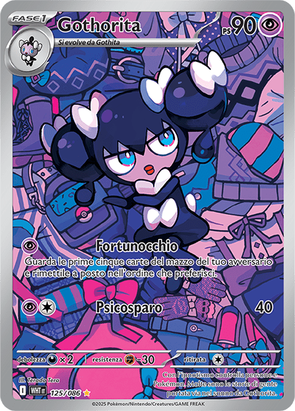 Con uno stile vivacissimo e a tratti fiabesco, Terada Tera ci regala una tenerissima scena idilliaca che vede protagonisti Kissara e il suo Kilowattrel nell’espansione Scarlatto e Violetto – Avventure Insieme, così come l’illustrazione di Gothorita intenta a rovistare in un armadio alla ricerca dell’outfit perfetto. Le sue opere, tuttavia, non rinunciano neppure a atmosfere più tetre e cupe, come dimostra l’illustrazione dedicata a Toxtricity, capace di mostrare la versatilità dell’artista anche in contesti più oscuri.