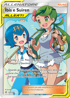 Introdotte sempre all’interno di questa espansione a chiusura della serie Sole e Luna le carte Allenatore Aiuto ALLEATI. Dopo aver visto i Pokémon formare inarrestabili squadre con le carte Pokémon-GX ALLEATI, alcune tra le più importanti personalità del mondo Pokémon non hanno voluto essere da meno. Guzman e Hala, Ibis e Suiren e l’iconico duo Rosso e Blu si sono uniti per dare supporto ai giocatori con effetti mai visti prima.