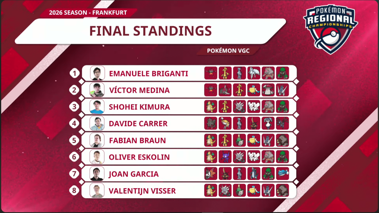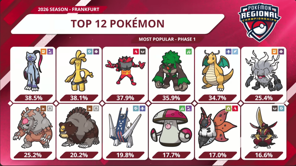 Il primo Regionale VGC Pokémon europeo della stagione 2026, disputato a Francoforte il 13 e 14 settembre 2025, ha mostrato chiaramente come il Regolamento H stia entrando in una nuova fase. Le squadre in top cut hanno evidenziato un mix di archetipi consolidati, come Rain e Mouse-Ape, e di idee creative, Hail con Frosmoth e Sand con Corviknight.