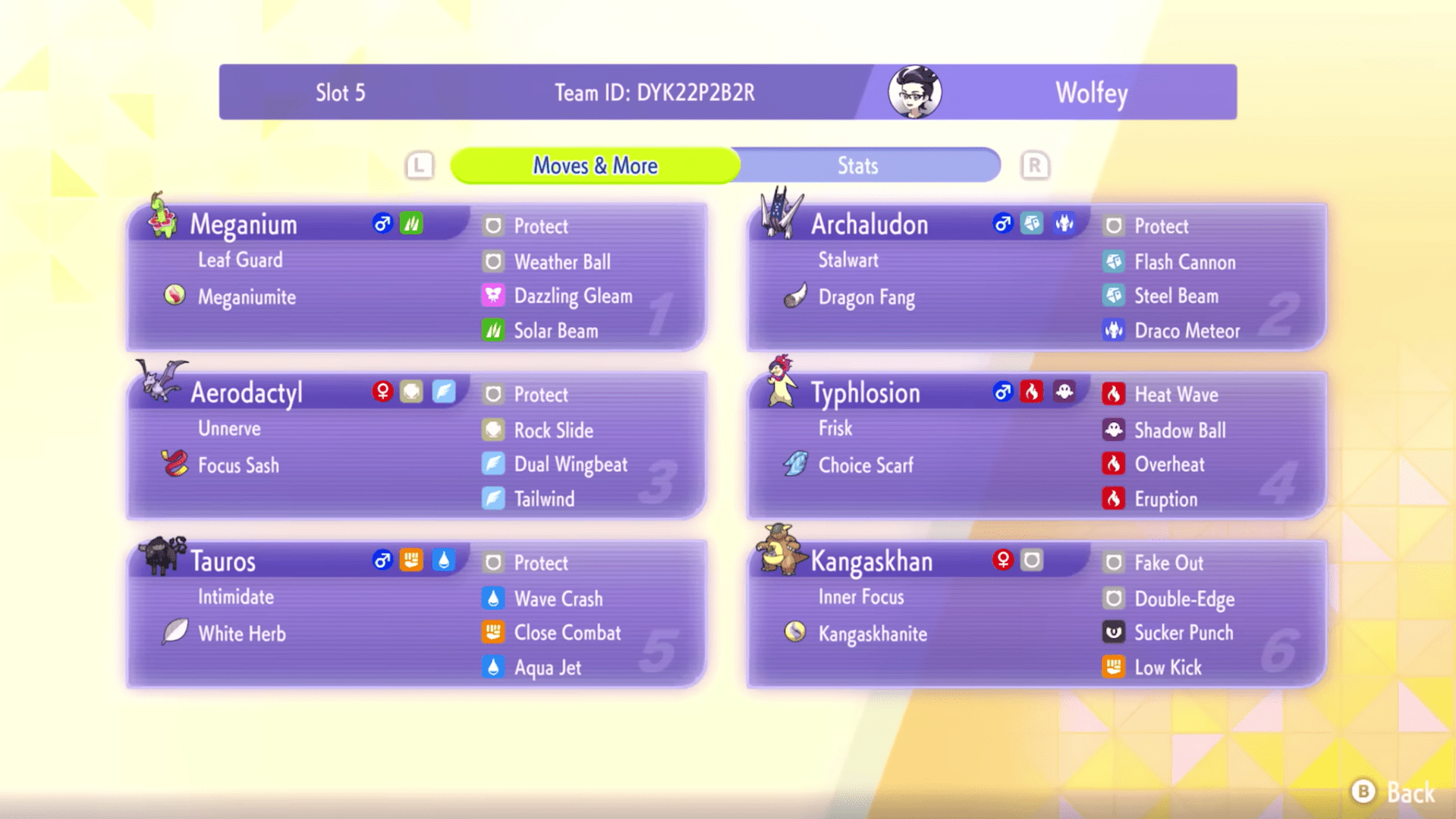 Wolfey Glick ha costruito una squadra che non si affida a una singola win condition, ma che può adattarsi e può giocare in modo iper-offensivo con Typhlosion e Aerodactyl, o più posizionale con Kangaskhan e Tauros. La presenza di Meganium offre una risposta specifica e potente ai team meteo, dimostrando che il team è stato pensato per dominare il meta attuale.