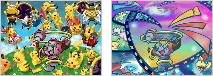 Come è possibile notare, tutti i lavori presentano il disegno del Pokémon protagonista del film in primo piano, mentre lo sfondo e la colorazione sono molto variabili. I disegni inviati per il concorso sono stati tantissimi e tutti sono stati esaminati dalle persone che hanno lavorato al film e dall’editor del magazine che ha lanciato il concorso su Hoopa.