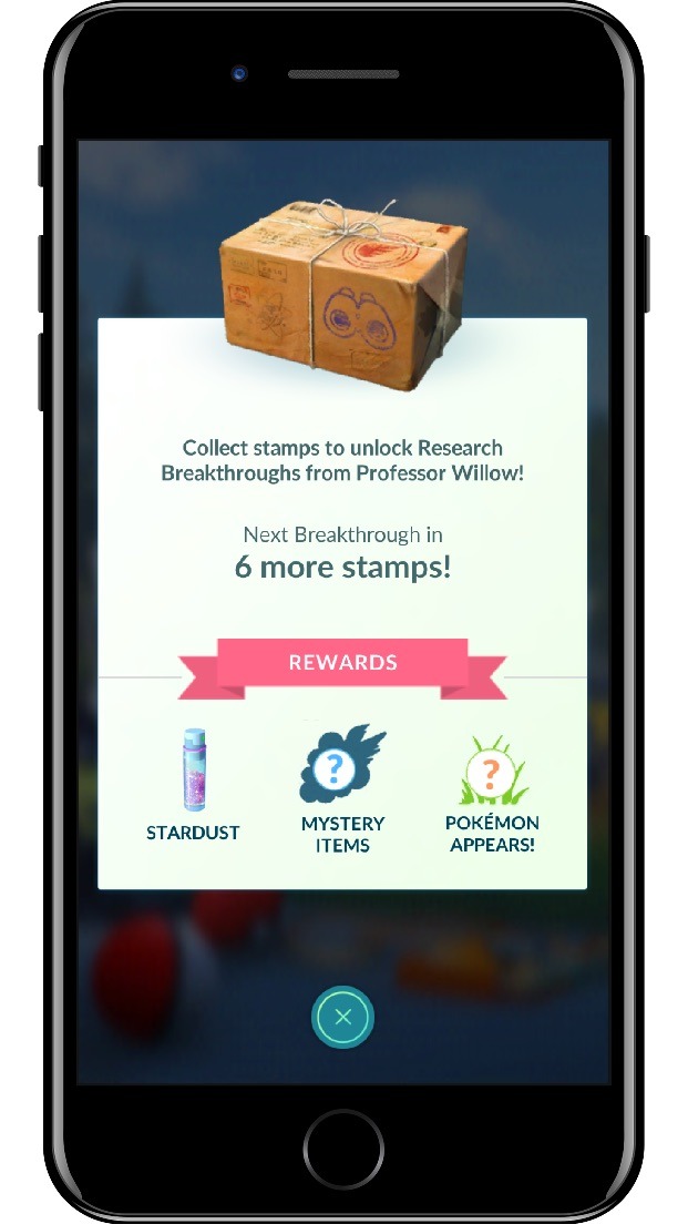 Potete ricevere un timbro al giorno completando almeno una ricerca sul campo e, quando avrete ottenuto sette timbri, potrete raggiungere una scoperta straordinaria per ricevere premi ancora più fantastici. Potreste perfino incontrare un Pokémon Leggendario.