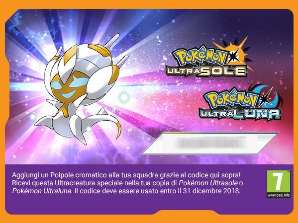 La mail con il codice seriale dell’Ultracreatura è stata inviata a tutti i giocatori che si erano iscritti al Club Allenatori di Pokémon entro mercoledì 10 ottobre, come annunciato nel nostro precedente articolo. Scopri le caratteristiche del bellissimo Poipole biancodorato e come fare per riscattarlo nel gioco: