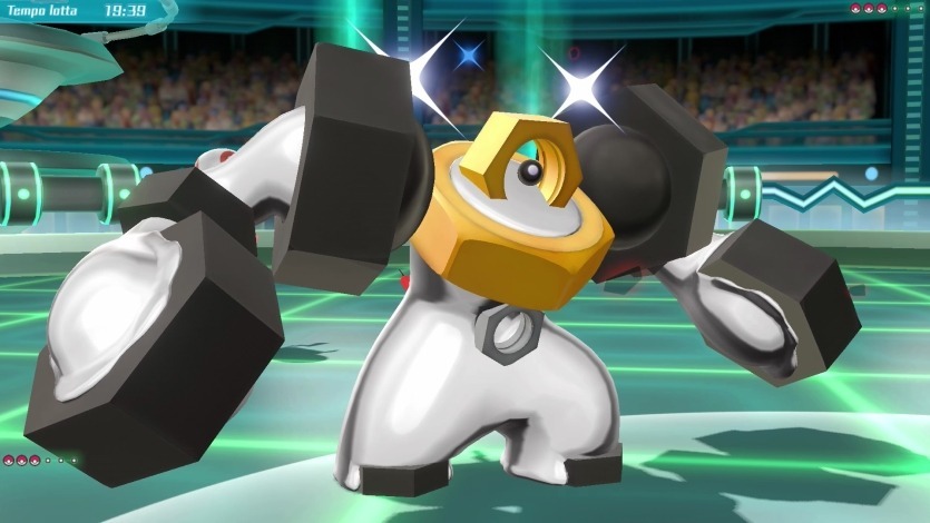 Può anche usare Pugni Corazzati, una potente mossa fisica di tipo Acciaio davvero unica. Sfruttando il dado esagonale sul petto, infatti, Melmetal fa roteare le braccia ed è in grado di colpire l’avversario due volte. Il peso dei grossi dadi sugli arti, combinato al movimento rotatorio, dà a questa mossa una potenza straordinaria.