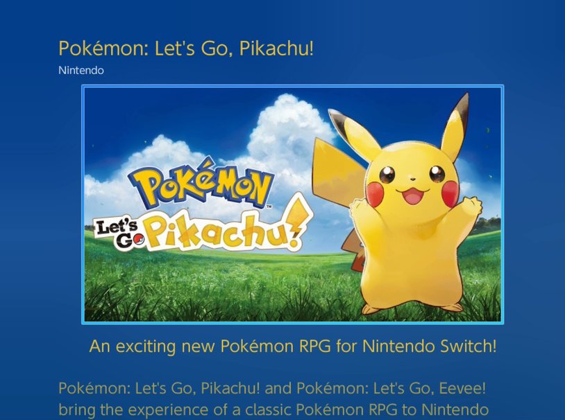 Nintendo ha aggiornato l’eShop di Nintendo Switch per permettere il pre-download di Pokémon: Let’s Go, Pikachu! e Let’s Go, Eevee!.