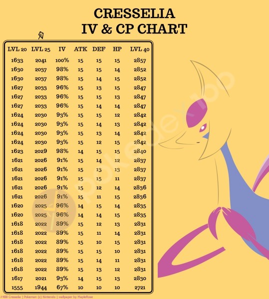 Ecco una pratica tabella degli IV del Pokémon a seconda dei PL durante la cattura: