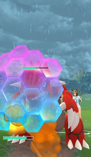 Toccando ripetutamente sullo schermo sarà possibile attaccare l’avversario usando la mossa veloce, che caricherà l’energia della mossa caricata (anche della seconda mossa caricata se sbloccata). Pare sia possibile caricare l’energia anche durante l’animazione di lancio della Ball di un Pokémon. Appena uno dei due sfidanti avrà caricato la mossa, sarà possibile utilizzarla: