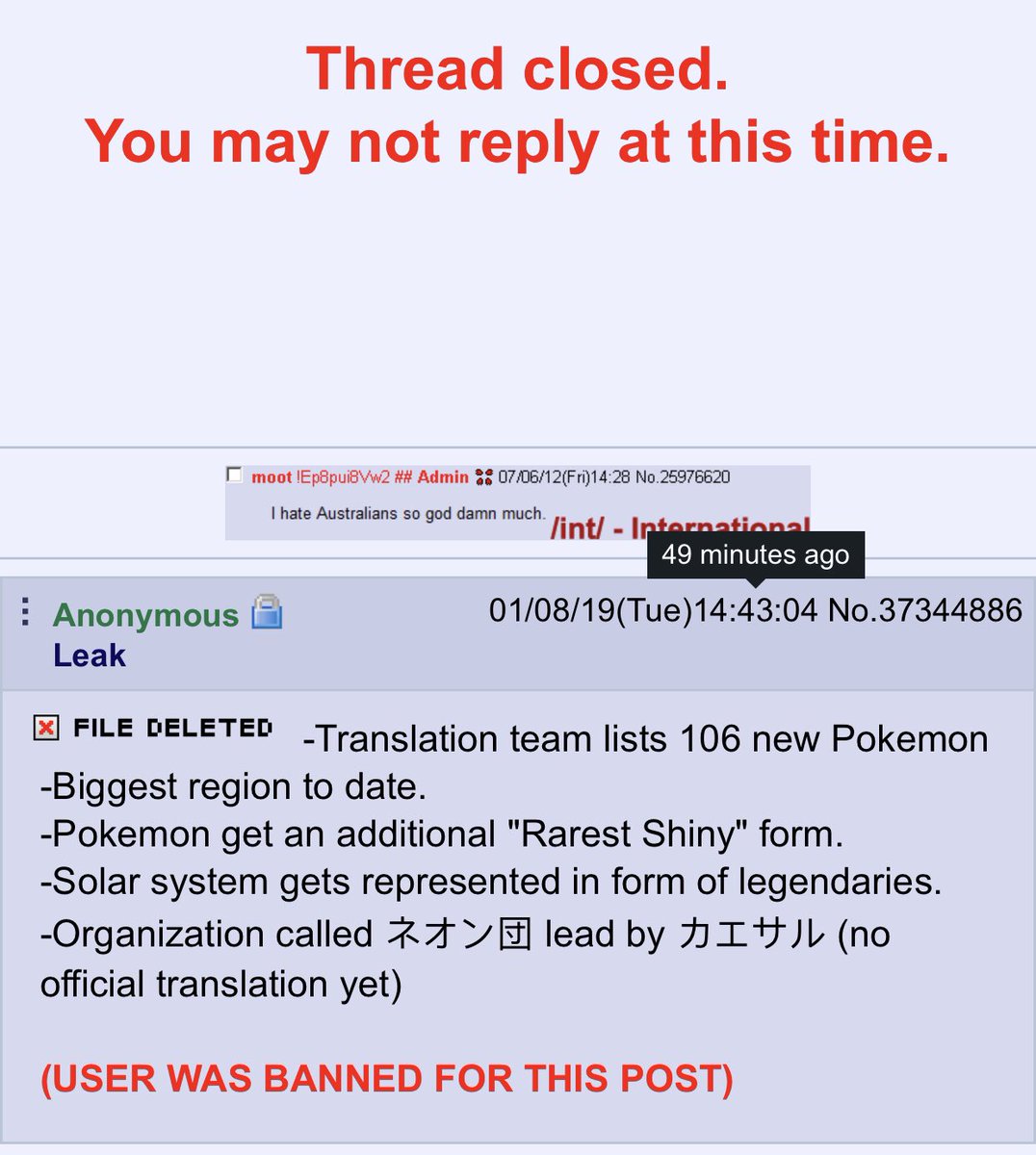 L’8 gennaio 2019 è apparsa una discussione su 4chan in cui un tale Anonimo ha pubblicato una lista di caratteristiche che saranno introdotte, a detta sua, nei nuovi giochi Pokémon per Nintendo Switch del 2019. Nella lista in questione possiamo leggere:
