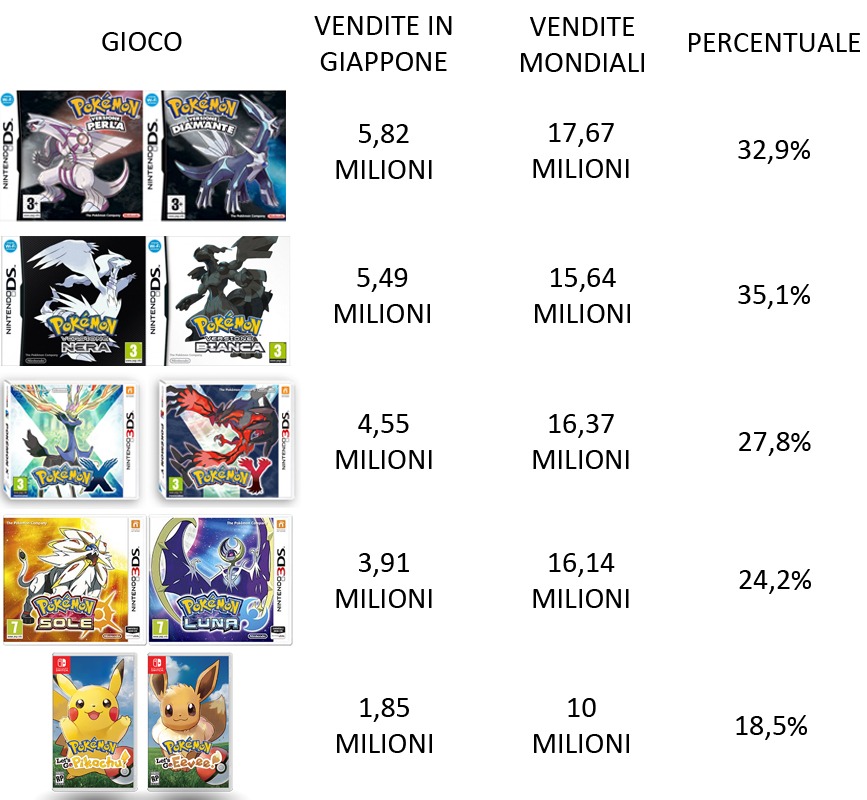Solo in Giappone, che rappresenta circa il 18,5% delle vendite complessive, i due titoli hanno evidenziato un calo rispetto ai precedenti capitoli della serie principale Pokémon, totalizzando “solo” 1,85 milioni di copie vendute.