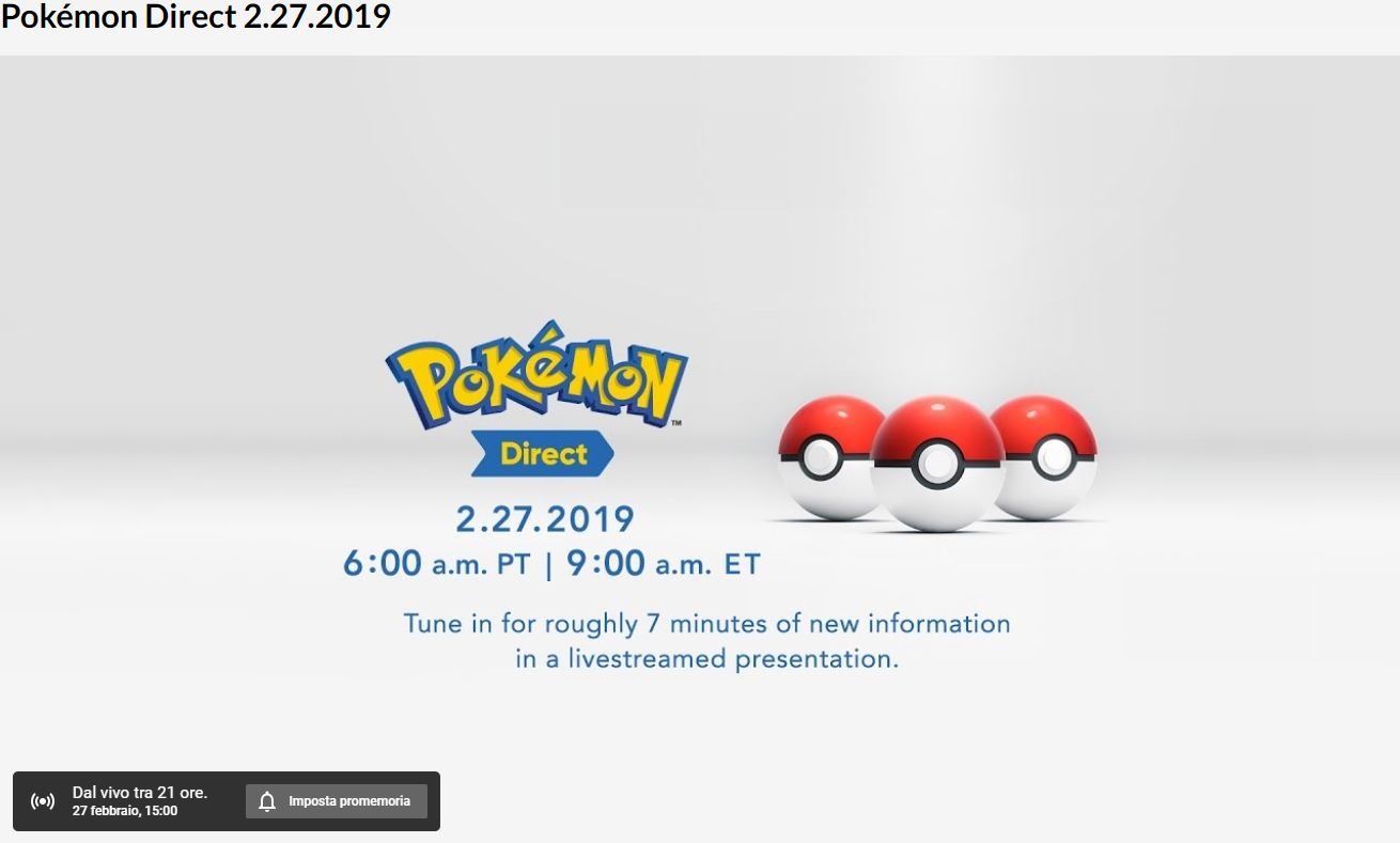 I tag del Pokémon Direct confermano che l’oggetto del video sarà Pokémon 2019. Le parole-chiave lascerebbero intuire che il gioco sia un action-RPG!