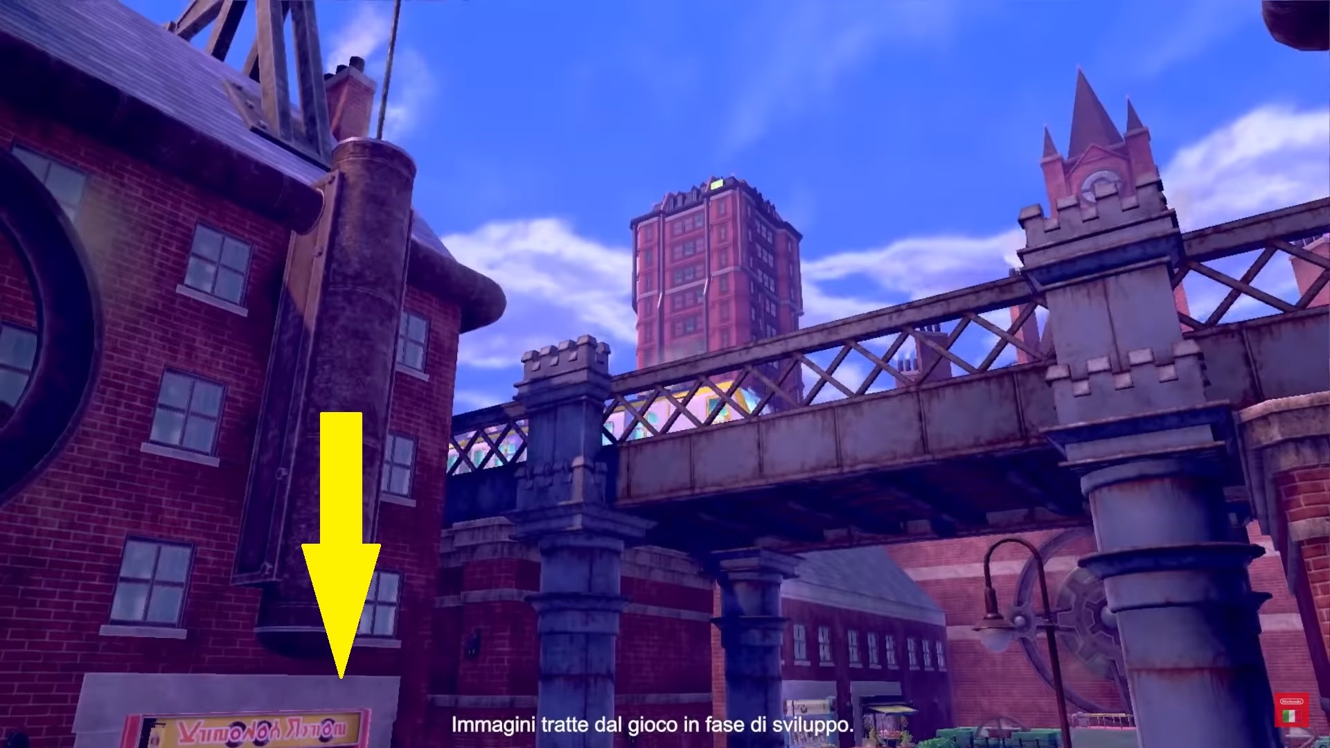 L’esistenza di un nuovo alfabeto in Pokémon Spada e Scudo è estremamente verosimile, in quanto le particolari lettere che compongono il nome della casa di sviluppo giapponese sono presenti in varie zone della mappa di gioco. Una prima ed evidente corrispondenza la si può trovare nella zona dello stadio situato nel piccolo paesino di campagna. I simboli, o meglio, le lettere, si trovano anche sulla porta dello stadio e sulla colonnina d’ingresso.