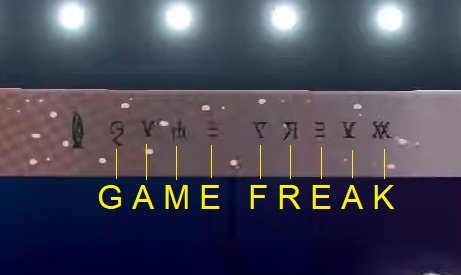 In un frame del trailer, infatti, possiamo notare Lucario lottare contro Tyranitar in uno stadio. Alle spalle dei due Pokémon, inciso nel muro, troviamo lo storico logo di Game Freak. Accanto al logo troviamo una scritta in caratteri alquanto particolari, ma che è facilmente riconducibile alle stesse parole “Game Freak“. Alla luce di questo piccolo indizio situato in quel piccolo pezzo di muro, i simboli generici dei quali abbiamo parlato assumono una valenza completamente diversa. Ormai è tutto chiaro: siamo in presenza del misterioso Alfabeto di Galar.