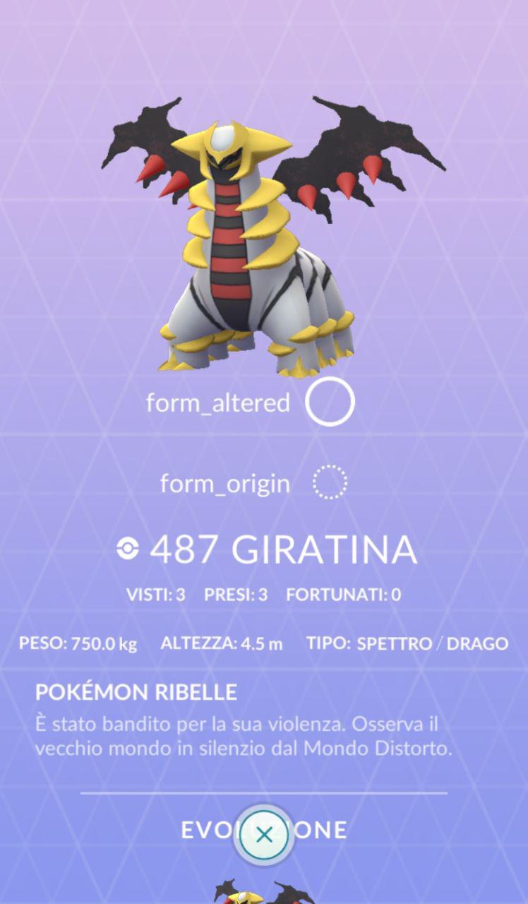 La pagina di Giratina ora mostra entrambe le sue forme, ma il testo risulta non tradotto.